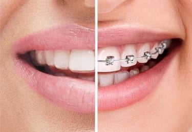 Braces use a system of fixed brackets and wires, while aligners are clear, removable plastic trays.